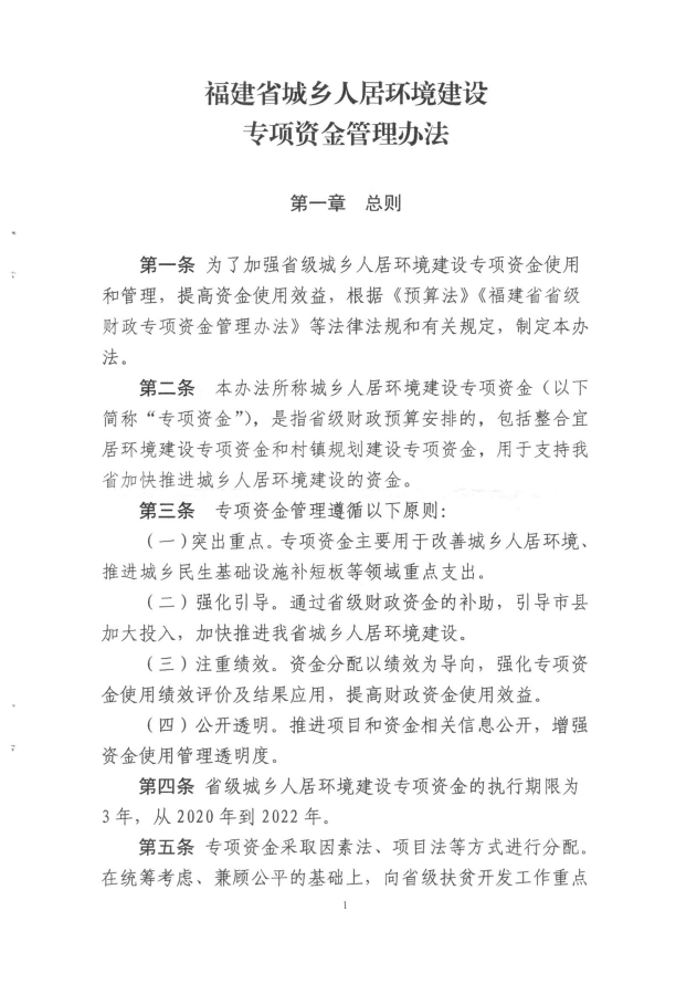福建省財政廳福建省住房和城鄉建設廳關于印發《福建省城鄉人居環境建設專項資金管理辦法的通知》(閩財建[2020]3號)